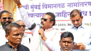 उलवे : “सरकार सत्तापिपासू झाले आहे. सत्ताधारी फोडाफोडीच्या राजकारणात दंग झालेत. त्यांना सत्तेची नशा चढलीय. १९३० च्या जंगल सत्याग्रहाचा इतिहास उरणला आहे. १९८४ च्या लढ्याचे प्रणेते दि. बा. पाटील साहेब आहेत. त्या ऐतिसाहिक आंदोलनात पाच हुतात्मे झालेत. साडेबारा टक्केचा कायदा देशभर लागू झाला तो दिबांमुळेच, ओबीसी-मंडल आयोग लढ्याचे ते शिलेदार आहेत. तरीही आंतरराष्ट्रीय विमानतळाला दिबांचे नाव दिले जात नाही. त्यांच्या नावाबाबत जो सरकारचा बोलघेवडेपणा सुरू आहे, त्याबाबत सरकारचा तीव्र निषेध. येत्या स्थानिक स्वराज्य संस्थांच्या निवडणुकीत भूमिपुत्रांनी सत्ताधाऱ्यांना पहिला झटका द्यायला हवा. विमानतळाचे उदघाटन झाले, आजही विमानही उडाले, तरीही सरकार झोपेचे सोंग घेऊन आहे, याची जाण आता भूमिपुत्र प्रकल्पग्रस्तांना झाली आहे. भूमिपुत्रांच्या छाताडावर वसलेल्या विमानतळाला दिबांच्या नावाची सरकारला कशामुळे अॅलर्जी आहे. तीन वेळा आश्वासन देऊनही भूमिपुत्रांची सरकार चक्क फसवणूक करीत आहे. त्यामुळे बीजेपी सरकारला दणका देणे गरजेचे आहे. जोपर्यंत दिबांचे विमानतळाला नाव दिले जात नाही तोपर्यंत तरी दिबांचे पुत्र अतुल पाटील यांनी भाजपला लाथ मारायला हवी होती, पण ते त्यांना जमले नाही. सरकारने एकप्रकारे भूमिपुत्रांचा आता केसाने गळा कापला आहे, पण सर्वसामान्य जनता कोणत्याही क्षणी पेटून उठेल आणि सरकारला नेस्तनाबूत करेल, हे सरकारने लक्षात घ्यावे. त्यामुळे तातडीने दिबांचे नाव विमानतळाला द्या,” असे आंतरराष्ट्रीय कामगार नेते आणि कॉंग्रेसचे रायगड जिल्हाध्यक्ष महेंद्रशेठ घरत म्हणाले. दिबांचे नाव विमानतळाला न दिल्याने चिंचपाडा येथे भूमिपुत्रांनी आज काळ्या फिती लावून सरकारचा निषेध केला, त्यावेळी महेंद्रशेठ घरत बोलत होते. यावेळी माजी आमदार बाळाराम पाटील, निलेश पाटील, राजेंद्र पाटील आदी मान्यवर उपस्थित होते. त्यांनी सरकारचा तीव्र शब्दांत निषेध केला.