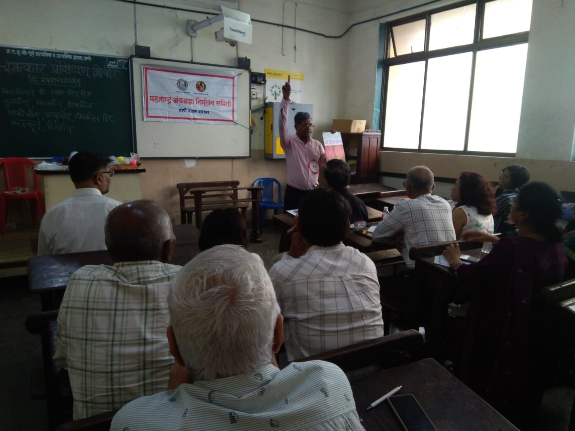 महाराष्ट्र अंधश्रद्धा निर्मुलन समिती, ठाणे शहर शाखेद्वारे दिवसभराचे ‘चमत्कार सादरीकरण प्रशिक्षण शिबीर’ नुकतेक मो. ह. विद्यालय, स्टेशन रोड, ठाणे (प.) येथे आयोजित करण्यात आले होते. या शिबिराचे प्रशिक्षण महा.अंनिस प्रकाशन विभागाचे राज्य कार्यवाह प्राचार्य मच्छिंद्रनाथ मुंडे यांनी घेतले. अंधश्रद्धा, बुवाबाजी व तथाकथित चमत्कारांचा वैज्ञानिक पद्धतीने पर्दाफाश कसा करावा, याचे सखोल व प्रत्यक्ष प्रशिक्षण या शिबिरात दिले गेले.पैशाचा पाऊस कसा पडतो, घुंगरु कसा वाजतो, मंत्राने अग्नी कसे पेटविले जाते, लिंबूतुन रंग बदलणारा दोरा काढून दाखविणे, नारळ व लिंबूतुन आग पेटविणे, कमंडलूतुन विविध नद्यांचे पाणी पाझरणे, नारळातुन वस्तु काढणे, तांदूळ भरलेल्या तांब्यात त्रिशूल हवेत तरंगणे, डोळे बंद करुन रंग ओळखणे, ३ सेकंद आगीवरुन चालणे, प्रशिक्षणाच्या सहाय्याने पाण्यावर तरंगणे आदी अनेक प्रयोगाद्वारे बाबाबुवांद्वारे चमत्कार कसे केले जाते, त्यामागील युक्त्या कोणत्या असतात आणि त्या वैज्ञानिक दृष्टिकोनातून कशा उघड करता येतात, याचे सविस्तर प्रात्यक्षिक व प्रशिक्षण या शिबिरात दिले गेले. सदर शिबिरासाठी शाळेय विद्यार्थ्यांपासून महिला व पुरुषांनी गर्दी केली होती. कोणत्याबी मांत्रिक-तांत्रिक-बुवा-बाबा यांनी चमत्कार सिद्ध केल्यास ‘महाराष्ट्र अंधश्रद्धा निर्मुलन समिती’तर्फे २१ लाखाचे रोख बक्षिस दिले जाईल, असे आव्हान देऊनही आजवर गेल्या३६ वर्षात हेआव्हान कोणीही स्वीकारलेले नाही अशी माहितीही प्राचार्य मच्छिंद्रनाथ मुंडे यांनी यावेळी दिली.