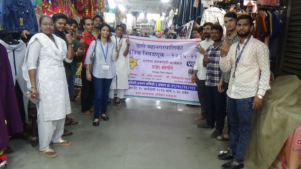 महापालिका आयुक्त सौरभ राव यांच्या मार्गदर्शनाखाली, अतिरिक्त आयुक्त २ प्रशांत रोडे, उपायुक्त उमेश बिरारी उपायुक्त तथा स्वीप नोडल अधिकारी मिताली संचेती यांच्या सहकार्याने शहरातील विविध परिसरात जनजागृती अभियाना राबविण्यात येत आहे. प्रभाग क्रमांक १९,२०,२१ व २२च्या निवडणूक निर्णय अधिकारी प्रज्ञा सावंत यांच्या पुढाकाराने नौपाडा भाजी मंडई परिसरात हा उपक्रम राबविण्यात आला. नौपाडा भाजी मंडईत दररोज मोठ्या संख्येने नागरिक खरेदीसाठी येत असल्याने या ठिकाणी मतदार जनजागृतीसाठी विशेष उपक्रमाचे आयोजन करण्यात आले होते. भाजी विक्रेते, ग्राहक तसेच स्थानिक नागरिक यांच्या सक्रिय सहभागातून हा कार्यक्रम पार पडला. यावेळी नागरिकांचा मोठ्या प्रमाणावर उत्स्फूर्त प्रतिसाद मिळाला. मतदानाच्या दिवशी सर्व कामे बाजूला ठेवून उज्ज्वल भविष्यासाठी आपला मतदानाचा हक्क बजावावा. येत्या १५ जानेवारी २०२६, सकाळी ७.३० ते ५.३० या वेळेत होणाऱ्या मतदान प्रक्रियेत सर्व पात्र नागरिकांनी न चुकता सहभागी व्हावे, असे आवाहन स्वीप पथकाच्या वतीने करण्यात आले.