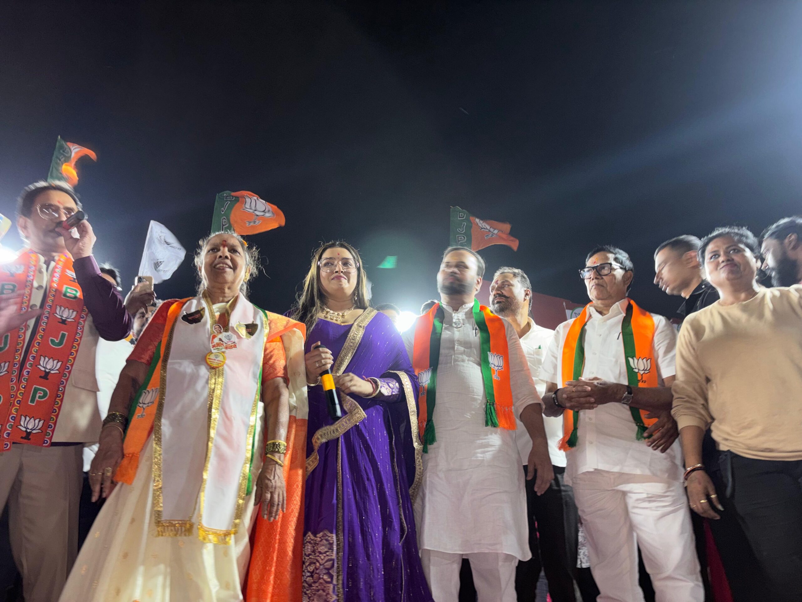 ठाणे : ठाणे महापालिका सार्वत्रिक निवडणुकीत भाजप – शिवसेना – रिपाई महायुतीच्या उमेदवारांच्या प्रचारासाठी सोमवारी प्रसिद्ध भोजपुरी स्टार अभिनेता व खासदार दिनेशलाल यादव उर्फ निरहुआ आणि प्रसिद्ध अभिनेत्री आम्रपाली दुबे ठाण्यात आले होते. या दोन्ही कलाकारांनी ठाण्यातील विविध भागांना भेटी देऊन महायुतीच्या उमेदवारांचा संगीतमय प्रचार केला. निरहुआ याने तर देशभक्ती जागावत भोजपुरी गीतातून ‘कमळ’ आणि ‘धनुष्य बाण’ या चिन्हाला मत देण्याचे आवाहन करीत धमाल उडवून दिली. यावेळी मोठया संख्येने उपस्थित जनसमुदायानेही “भारत माता की जय” च्या घोषणा देत निरहुआला साथ दिली.