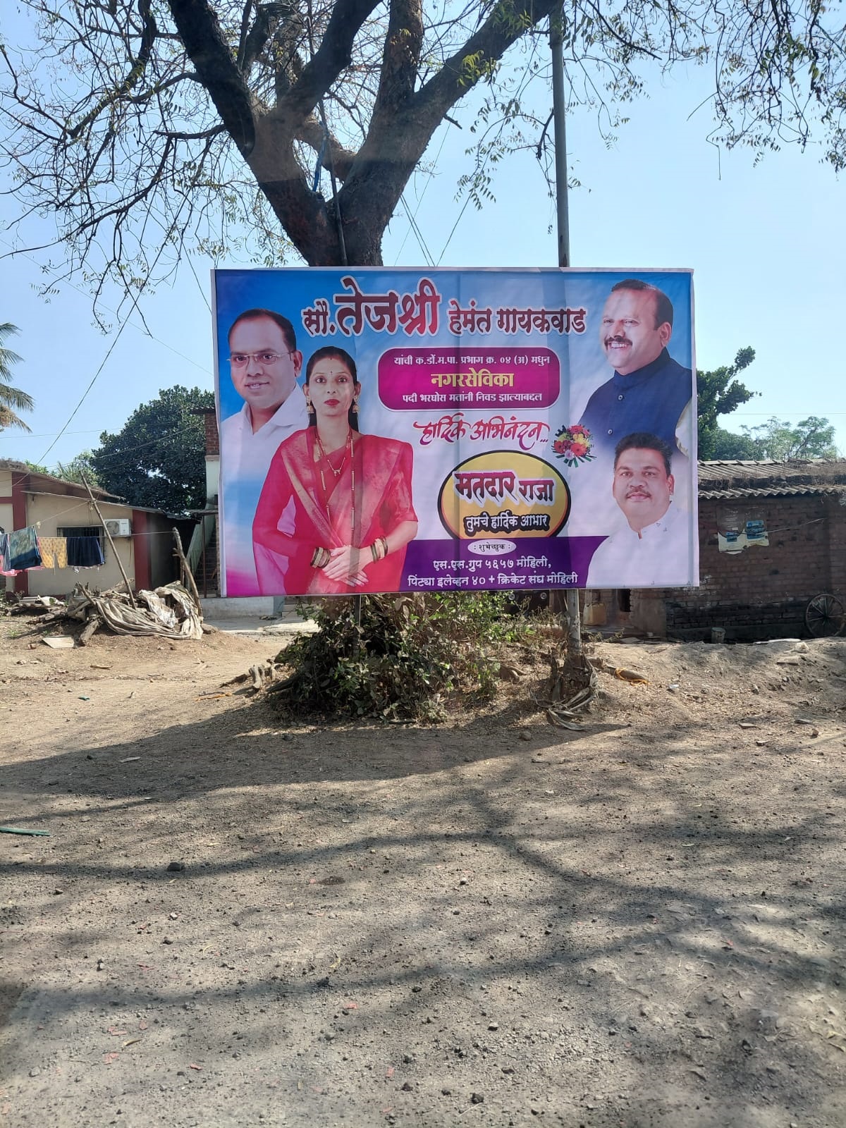 नगरसेविका तेजश्री गायकवाड यांच्या अभिनंदनाचे भाजपाने लावले बॅनर
