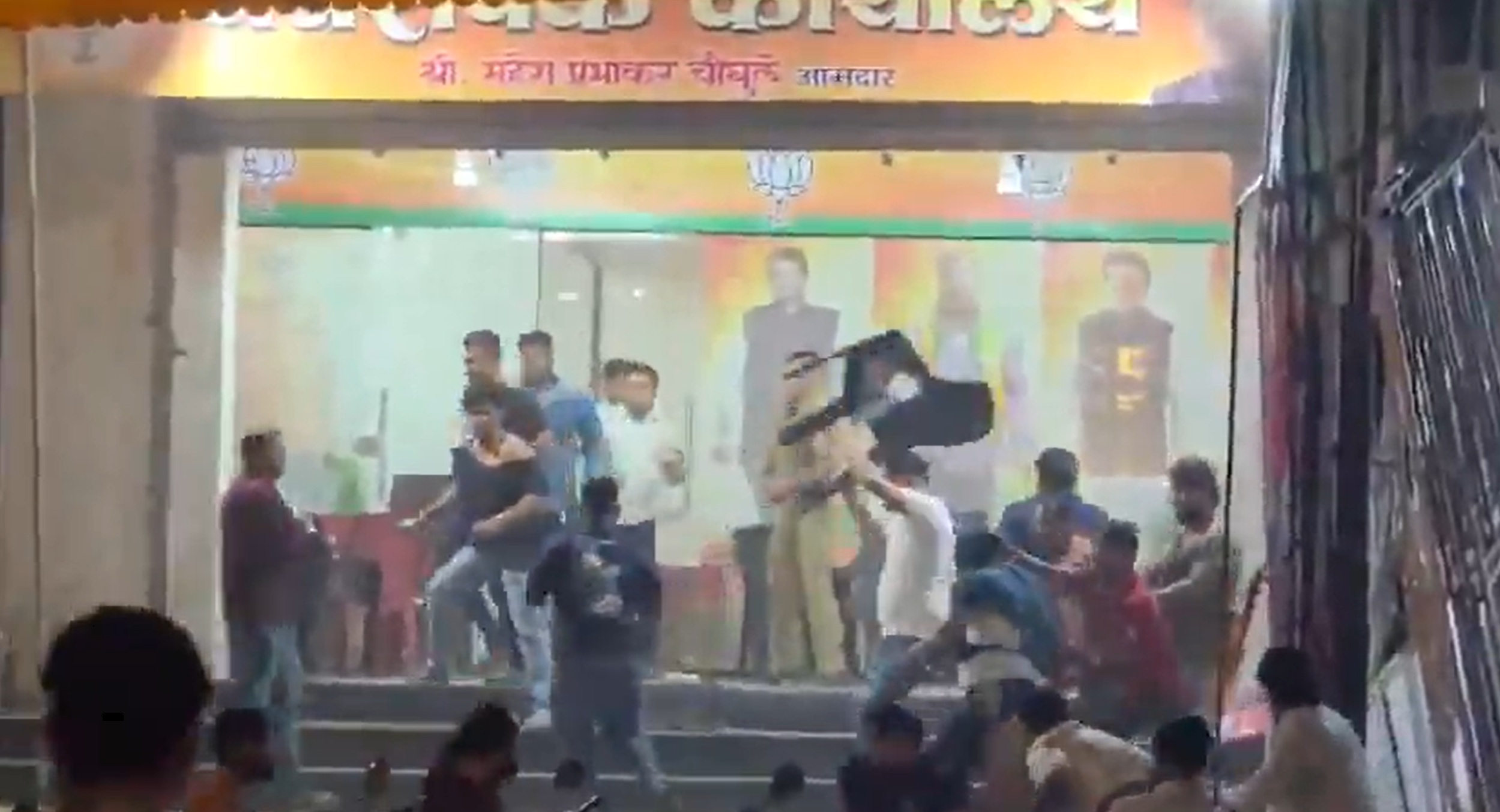 भिवंडी : भिवंडीत भाजपा पक्षात फ्रीस्टाईल हाणामारी झाली. भिवंडीतील प्रतिष्ठेच्या प्रभाग क्रमांक एक मध्ये कोणार्क विकास आघाडीचे विलास आर पाटील यांचा मुलगा मयुरेश पाटील यांनी भाजपा आमदार महेश चौघुले यांचा मुलगा मित चौघुले याचा पराभव केल्या नंतर मागील दोन दिवसांपासून तंग असलेल्या वातावरणात मित चौघुले यांचे समर्थकांनी कोणार्क विकास आघाडी चे माजी महापौर विलास पाटील यांच्या घरावर प्राणघातक हल्ला करीत दगडफेक केली. यावेळी काही कार्यकर्त्यांवर चाकू हल्ला केला गेला.त्यानंतर विलास पाटील समर्थक छत्रपती शिवाजी महाराज चौकात रस्त्यावर बसून आंदोलन करीत होते.त्याच वेळी समोर असलेल्या आमदार महेश चौघुले यांच्या कार्यालयात मोठा जमाव जमला होता.यावेळी जोरदार घोषणाबाजी करण्यात आली. आमदार महेश चौघुले यांचे कार्यालयातून दगडफेक,सोडा वॉटर बॉटल व बल्ब यांचा मारा करण्यात आला. यामुळे परिसरात मोठा तणाव निर्माण झाला होता.पोलिसांचा मोठा फौजफाटा यावेळी परिसरात तैनात करण्यात आला.या वेळी विलास पाटील यांनी आमदार महेश चौघुले व पोलिस प्रशासनाच्या भूमिकेवर प्रश्नचिन्ह उपस्थित करीत त्यांच्यावर कारवाईची मागणी केली आहे.निजामपूर पोलिसांनी सुरवातीपासून भाजपाच्या बाजूने काम करीत आम्हाला दाबण्याचा प्रयत्न केला त्याचा निषेध करीत भाजपा मुख्यमंत्री त्याला पाठीशी घालीत असल्याचा आरोप विलास पाटील यांनी केला आहे.दरम्यान या हल्ल्यात दोन जण जखमी झाले असून दगडफेकीमध्ये माजी महापौर प्रतिभा पाटील या सुद्धा जखमींखल्या आहेत.
