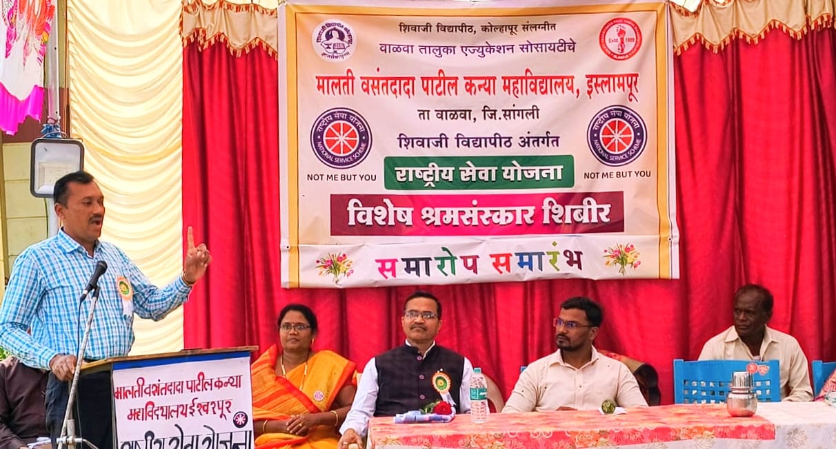 सांगली, विद्यार्थ्यांच्या व्यक्तिमत्त्वाचा विकास व नेतृत्वगुणांचा पाया राष्ट्रीय सेवा योजनेच्या माध्यमातून घातला जातो. शिबिर हे अनुभवाने जगता येते, असे प्रतिपादन जिल्हा समन्वयक डॉ. गोरखनाथ किर्दत यांनी केले. मसुचीवाडी येथे मालती वसंतदादा पाटील कन्या महाविद्यालयाच्या राष्ट्रीय सेवा योजनेच्या विशेष श्रमसंस्कार शिबिराच्या समारोपा प्रसंगी ते बोलत होते. ते पुढे म्हणाले, “समायोजन,आपले वर्तन ,सहकार्य, समर्पणाची भावना हीच, स्वयंसेवकाची खरी ओळख आहे. समाजाची गरज काय आहे हे जाणून घेऊन समाजाच्या मदतीसाठी जाऊन आपल्याला योगदान देता येईल व सामाजिक बांधिलकी जपता येईल.” अध्यक्षस्थानी महाविद्यालयाचे प्राचार्य डॉ. अंकुश बेलवटकर होते. ते म्हणाले की, ग्रामीण संस्कृतीची जाण आणि समाजशीलता शिबिरातून निर्माण होते. कृतीद्वारे घेतलेले शिक्षण आयुष्याच्या वेगवेगळ्या टप्प्यावर उपयोगी पडते. आजच्या स्पर्धेच्या युगात आपल्याकडे वेगवेगळी कौशल्य असणे गरजेचे आहे. सरपंच राधिका पाटोळे, उपसरपंच अमित कदम, ग्रामपंचायत सदस्य उज्वला फाटक, जयेश कदम, अजित गुरव ,तुकाराम सावळा विद्यालयाचे मुख्याध्यापक श्री विजयकुमार माळगे ,सर्व प्राध्यापक, कर्मचारी ,ग्रामस्थ उपस्थित होते. या शिबिरात गावची स्वच्छता, नदी परिसर स्वच्छता, प्लॅस्टिक संकलन ,जलसाक्षरता, कृषीविषयक सर्व्हे ,आरोग्य तपासणी सर्वे ,शाळेच्या परिसरात परसबाग, प्रबोधनपर व्याख्याने, व्यसनाधीनतेवर पोस्टर प्रेसेंटेशन इत्यादी उपक्रम राबविले .शिबिरातील उत्कृष्ट स्वयंसेविकांचा सत्कार करण्यात आला.