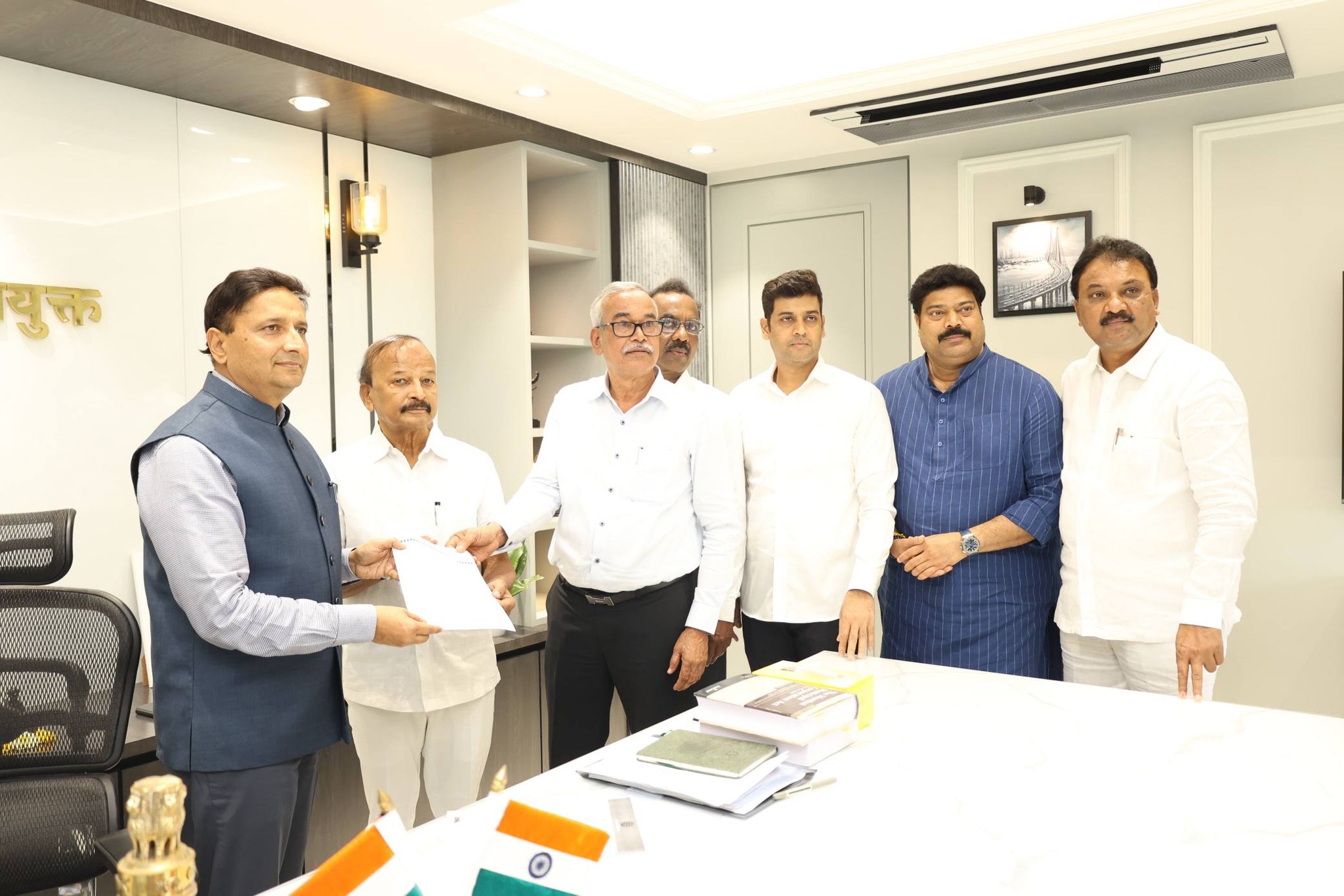 कल्याण डोंबिवली महापालिकेत शिवसेना पक्षाच्या गट स्थापनेसाठी कोकण विभागीय आयुक्त डॉ. विजय सूर्यवंशी यांना पत्र देताना शिवसेनेचे गटनेते विश्वनाथ राणे. सोबत खासदार डॉ. श्रीकांत शिंदे, शिवसेनेचे कल्याण जिल्हाप्रमुख गोपाळ लांडगे, आमदार डॉ. बालाजी किणीकर, आमदार राजेश मोरे, मनसेचे नेते आणि माजी आमदार राजू पाटील.