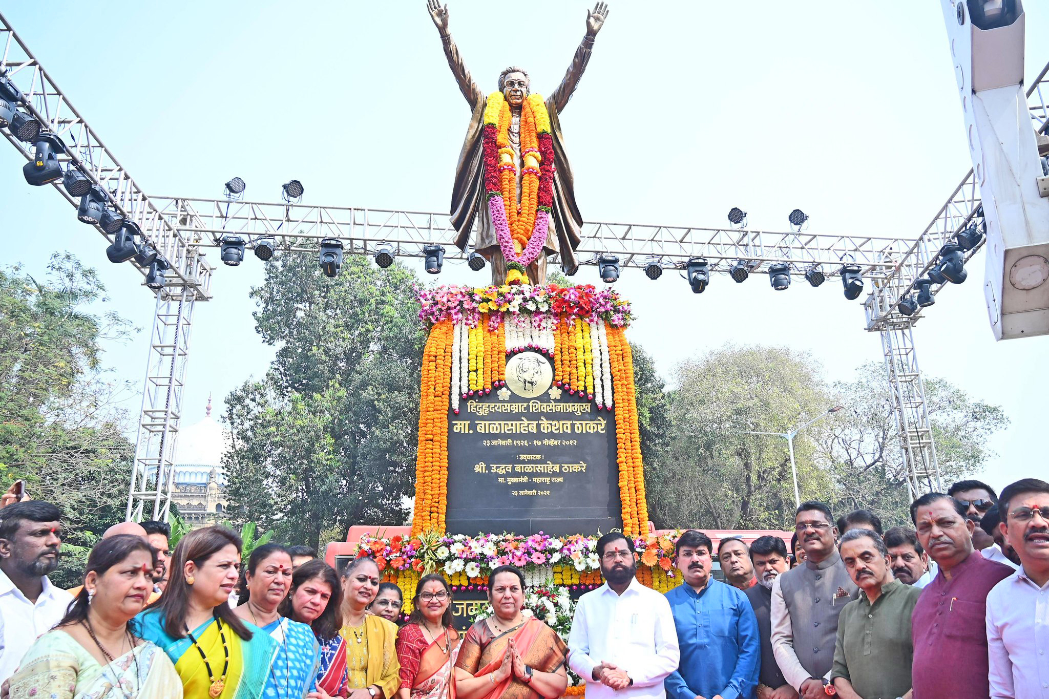 राज्याचे उपमुख्यमंत्री एकनाथ शिंदे यांनी दिवंगत शिवसेनाप्रमुख बाळासाहेब ठाकरे यांना अभिवादन करताना शिंदे यांनी महापालिका निवडणुकांतील यश, शिवसेनेची भूमिका आणि बाळासाहेब ठाकरे जन्मशताब्दी निमित्त राबवण्यात येणाऱ्या विविध लोककल्याणकारी अभियानांची माहिती दिली.