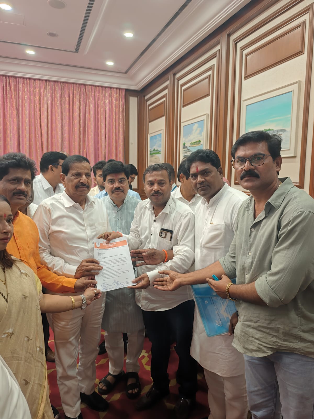 मुंबई: संजय गांधी राष्ट्रीय उद्यान, बोरिवली पूर्व येथील आदिवासी बांधवांच्या घरे तोडण्याच्या कारवाईला स्थगिती देण्याबाबत शिवसेना (उद्धव बाळासाहेब ठाकरे) पक्षाच्या वतीने राज्याचे वनमंत्री गणेश नाईक यांना मंत्रालयातील त्यांच्या दालनात विभागप्रमुख उदेश पाटेकर, मुंबई विद्यापीठ सिनेट सदस्य व विधानसभा निरीक्षक शशिकांत झोरे, स्थानिक नगरसेविका सारिका शशिकांत झोरे यांनी निवेदन दिले. वनमंत्री गणेश नाईक यांनी संपूर्ण माहिती जाणून घेतली आणि तत्काळ आदिवासी बांधवांची घरे तोडण्याच्या कारवाईला महाराष्ट्र शासनातर्फे स्थगिती देण्याचे आदेश वन विभागाला दिले. नगरसेवक धरम काळे, ऍड संदेश नारकर, महेश मोरे, प्रशांत वरठे, विनायक मराठे आदी मान्यवर यावेळी उपस्थित होते.