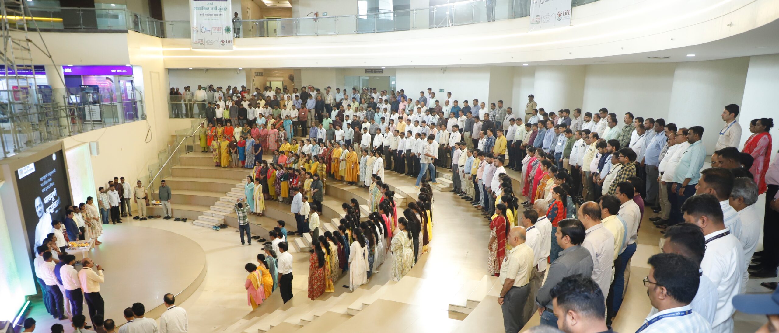 नवी मुंबई महानगरपालिकेच्या वतीने महापालिका मुख्यालयातील ॲम्फिथिएटर येथे अजितदादा पवार यांच्या प्रतिमेला आयुक्त डॉ. कैलास शिंदे यांच्या हस्ते पुष्पमालिका अर्पण करुन, अतिरिक्त आयुक्त सुनिल पवार, सर्व विभागप्रमुख व अधिकारी, कर्मचारी आणि अभ्यागत नागरिक यांच्या उपस्थितीत स्तब्ध उभे राहून भावपूर्ण श्रध्दांजली अर्पण करण्यात आली.