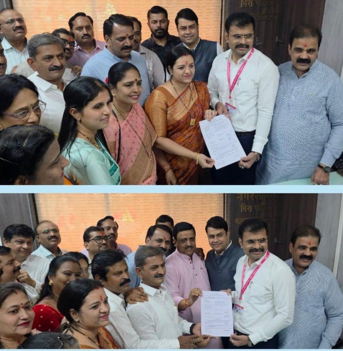 महापालिका निवडणुकीनंतर काल महापौर आणि उपमहापौर पदासाठी अर्ज भरण्यात आले. भाजपाकडून डिंपल मेहता तसेच उपमहापौर पदासाठी ध्रुव किशोर पाटील यांनी अर्ज भरला. महाविकास आघाडीकडून काँग्रेसच्या रुबीना फिरोझ शेख यांनी तसेच उमहापौर पदासाठी शिवसेनेच्या वंदना पाटील यांनी अर्ज भरला. भाजपा 78 सीट जिंकून बहुमतात आहे, काँग्रेसच्या १3 सीट आणि शिवसेनेच्या 3 सीट आहेत. भाजपच्या डिंपल मेहता या दुसऱ्यांदा महापौर होणार असल्याचे स्पष्ट होत आहे.