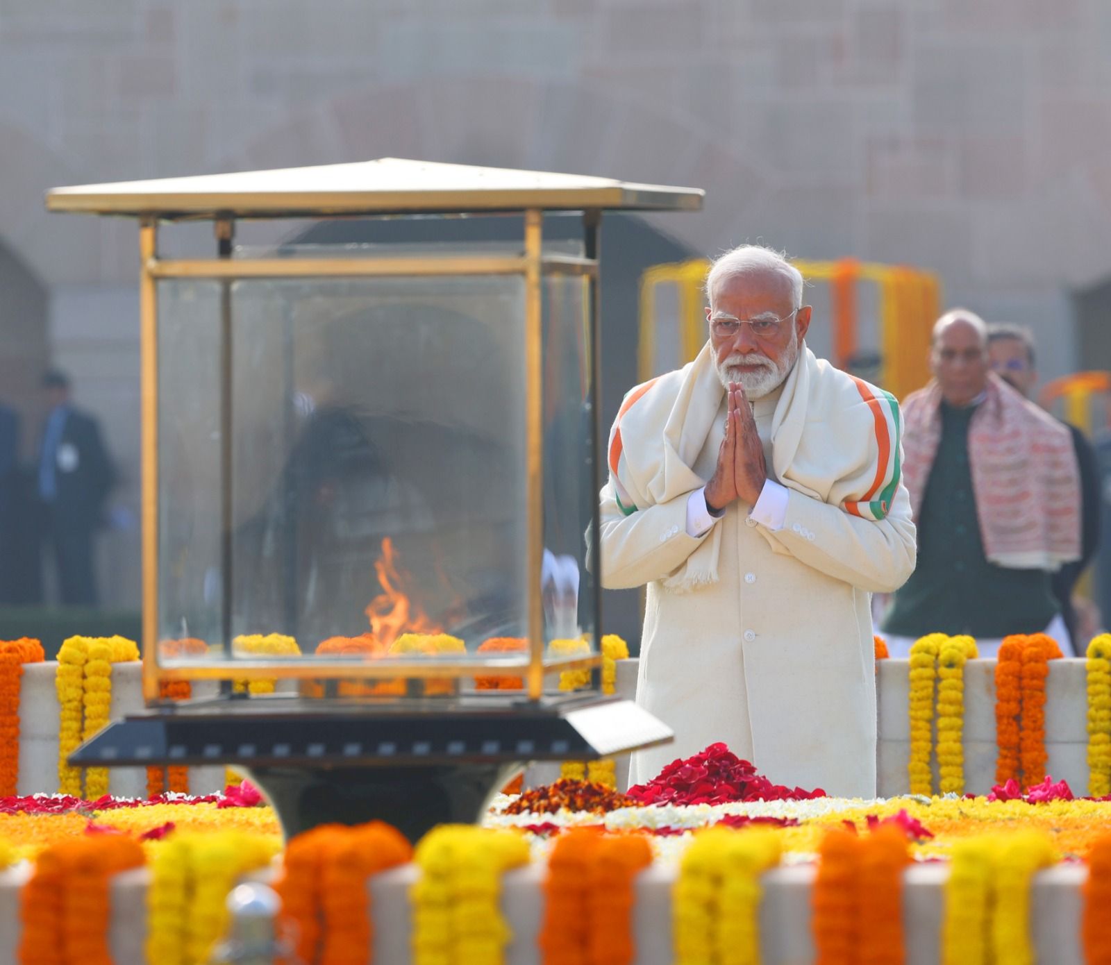 महात्मा गांधी यांच्या पुण्यतीथीनिमित्त पंतप्रधान नरेंद्र मोदी यांनी आज राजघाटावर जाऊन श्रद्धांजली अर्पण केली.