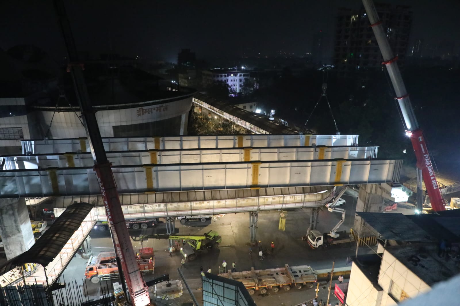 भांडुप पश्चिम येथे एकूण ३२५ मेट्रिक टन वजनाचे ३ भव्य स्टील स्पॅन्स यशस्वीरीत्या लॉन्च