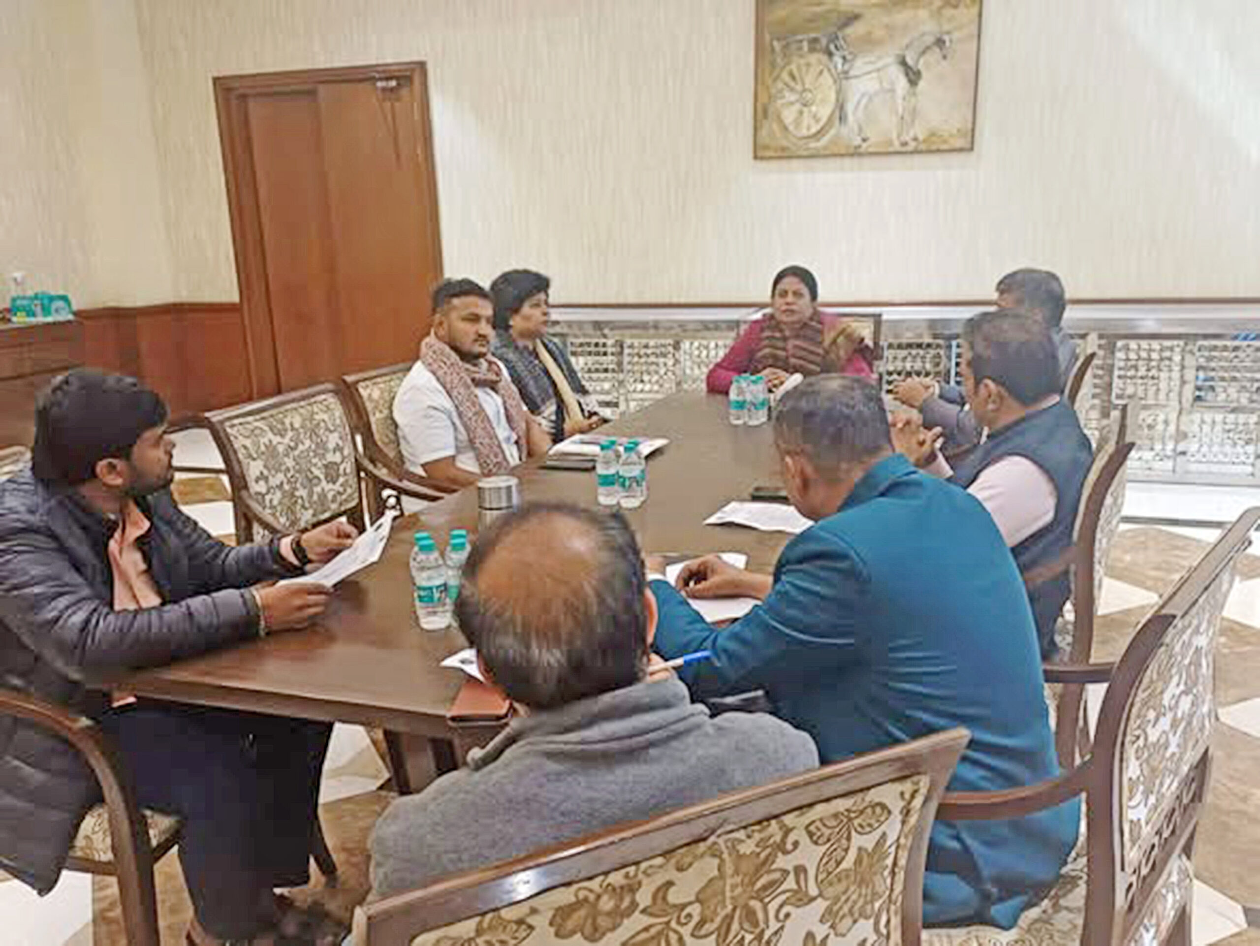 महाराष्ट्र सदनाच्या निवासी आयुक्त व सचिव आर. विमला पत्रकार परिषदेत साहित्य संमेलनाची अधिकृत घोषणा करताना. सोबत महाराष्ट्र परिचय केंद्राचे संचालक हेमराज बागुल, जनसंपर्क अधिकारी मनीषा पिंगळे आणि ‘सरहद’चे सह-संयोजक लेशपाल जवळगे उपस्थित होते.