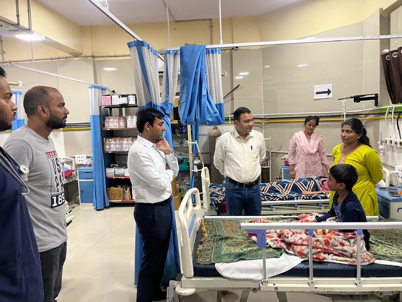 यावेळी त्यांनी नवजात अतिदक्षता विभाग, बालरोग अति दक्षता विभाग या विभागांची तसेच इतर विभागांची देखील पाहणी केली त्याचप्रमाणे रुग्णालयात चालू असलेल्या दुरुस्ती कामाची देखील पाहणी केली. महापालिका रुग्णालयातील रुग्ण काही वेळेस तातडीने इतर रुग्णालयात संदर्भित करावे लागतात यासाठी एसओपी तयार करण्याच्या सूचना त्यांनी उपस्थित वैद्यकीय अधिकारी यांस दिल्या.
