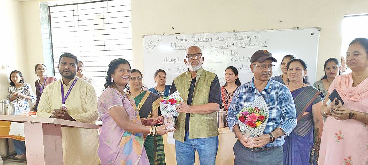 कल्याण : शाहू शिक्षण संस्था अध्यापक महाविद्यालय, बी.एड., शहाड विद्यार्थ्यांच्या कलागुणांना व सर्जनशीलतेला वाव देण्यासाठी विविध स्पर्धांचे आयोजन करण्यात आले होते. यामध्ये रांगोळी स्पर्धा, मेहंदी स्पर्धा, फुल सजावट, नेल आर्ट स्पर्धा, हेअर स्टाईल स्पर्धा तसेच फूड स्टॉल (खाद्य मेळावा) या उपक्रमांचा समावेश होता. या कार्यक्रमास शाहू शिक्षण संस्थेचे सचिव डॉ. गिरीश लटके यांची उपस्थिती लाभली. तसेच प्रमुख उपस्थिती म्हणून ज्येष्ठ पत्रकार बाबा रामटेके उपस्थित होते.