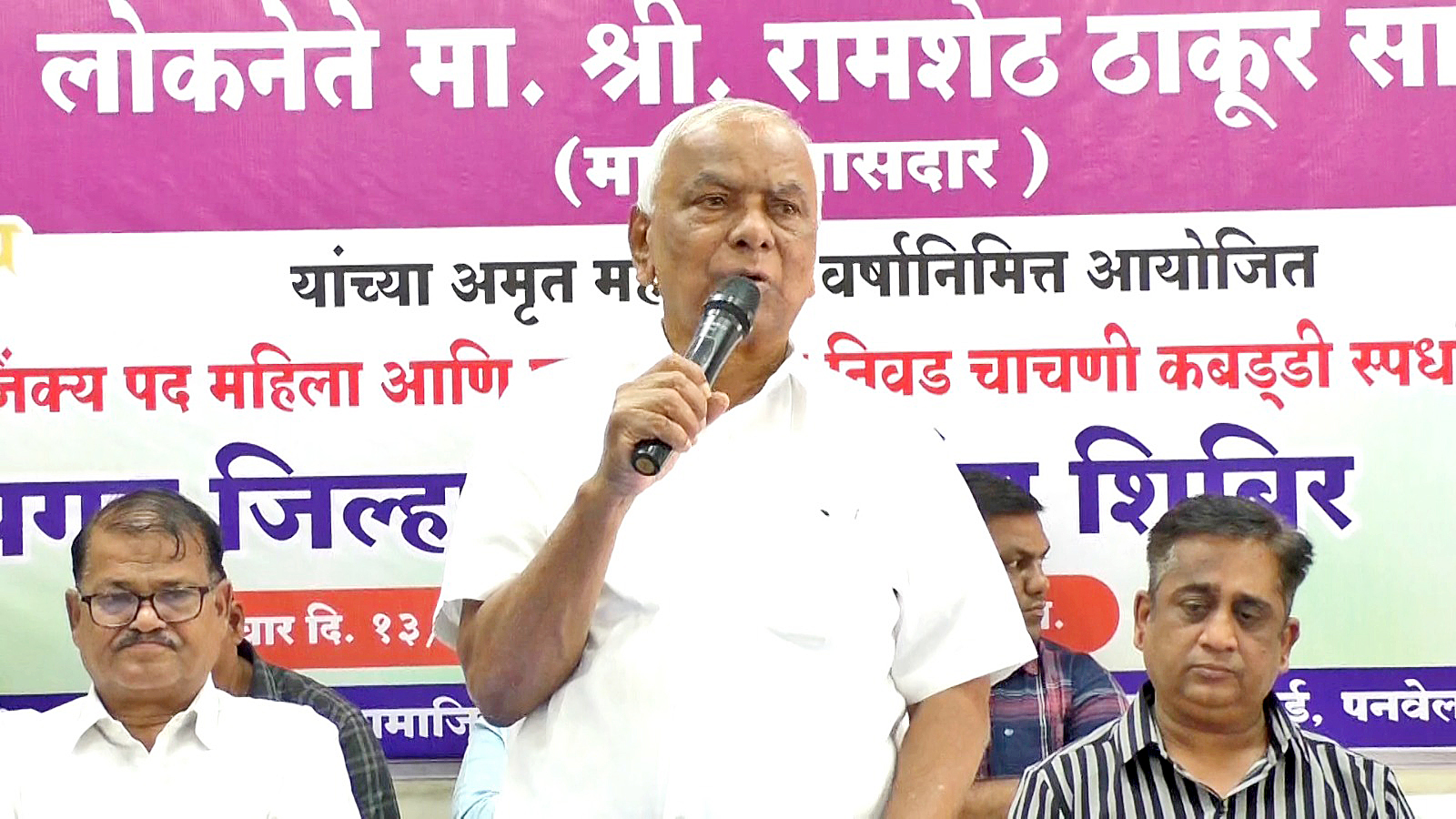माजी खासदार लोकनेते रामशेठ ठाकूर यांच्या अमृत महोत्सवी वर्षानिमित्त श्री रामशेठ ठाकूर सामाजिक विकास मंडळ, पनवेल आणि रायगड जिल्हा कबड्डी असोसिएशन यांच्या संयुक्त विद्यमाने “रायगड जिल्हास्तरीय प्रौढ महिला व पुरुष गट जिल्हा अजिंक्यपद निवड चाचणी कबड्डी स्पर्धा” आयोजित करण्यात आली आहे. त्या अनुषंगाने रायगड जिल्हा कबड्डी पंच शिबिराचे आयोजन पनवेल येथील मार्केट यार्डमधील श्री रामशेठ ठाकूर सामाजिक विकास मंडळाच्या सभागृहात करण्यात आले होते. यावेळी प्रमुख मान्यवर म्हणून ते बोलत होते.