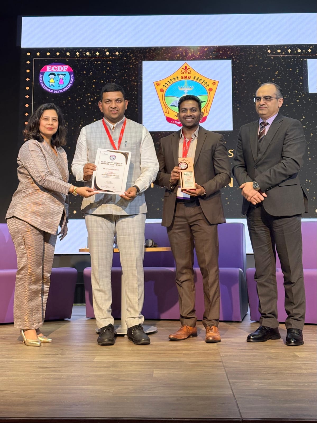 दिवा : Early Childhood Development Forum यांच्या वतीने दुबई येथील ग्लेंडल इंटरनॅशनल स्कूलमध्ये आयोजित विशेष समारंभात दिवा शहरातील एस.एम.जी. ग्रुप ऑफ स्कूल्सचा सन्मान करण्यात आला. शिक्षण क्षेत्रात विशेषतः बालविकास आणि गुणवत्तापूर्ण शिक्षणासाठी केलेल्या उल्लेखनीय कार्याची दखल घेत हा मानाचा सन्मान प्रदान करण्यात आला. या समारंभात एस.एम.जी. ग्रुप ऑफ स्कूल्सचे सचिव स्वप्निल मारुती गायकर आणि विश्वस्त प्रणाल मारुती गायकर यांनी सन्मान स्वीकारला. त्यांच्या दूरदृष्टीपूर्ण नेतृत्वामुळे आणि शिक्षण क्षेत्रातील सातत्यपूर्ण योगदानामुळे संस्थेला आंतरराष्ट्रीय स्तरावर मान्यता मिळत आहे.