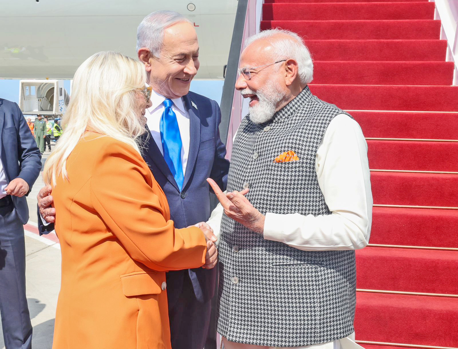 इस्रायलच्या दोन दिवसीय दौऱ्यावर आलेल्या भारताचे पंतप्रधान नरेंद्र मोदी यांचे विमानतळावर इस्रायलचे पंतप्रधान बेंजामिन नेतान्याहू आणि त्यांच्या पत्नी सारा नेतान्याहू यांनी स्वागत केले. यावेळी सारा यांनी परिधान केलेला भगव्या रंगाचा वेष सोशल मीडियावर चर्चेचा विषय ठरला होता.