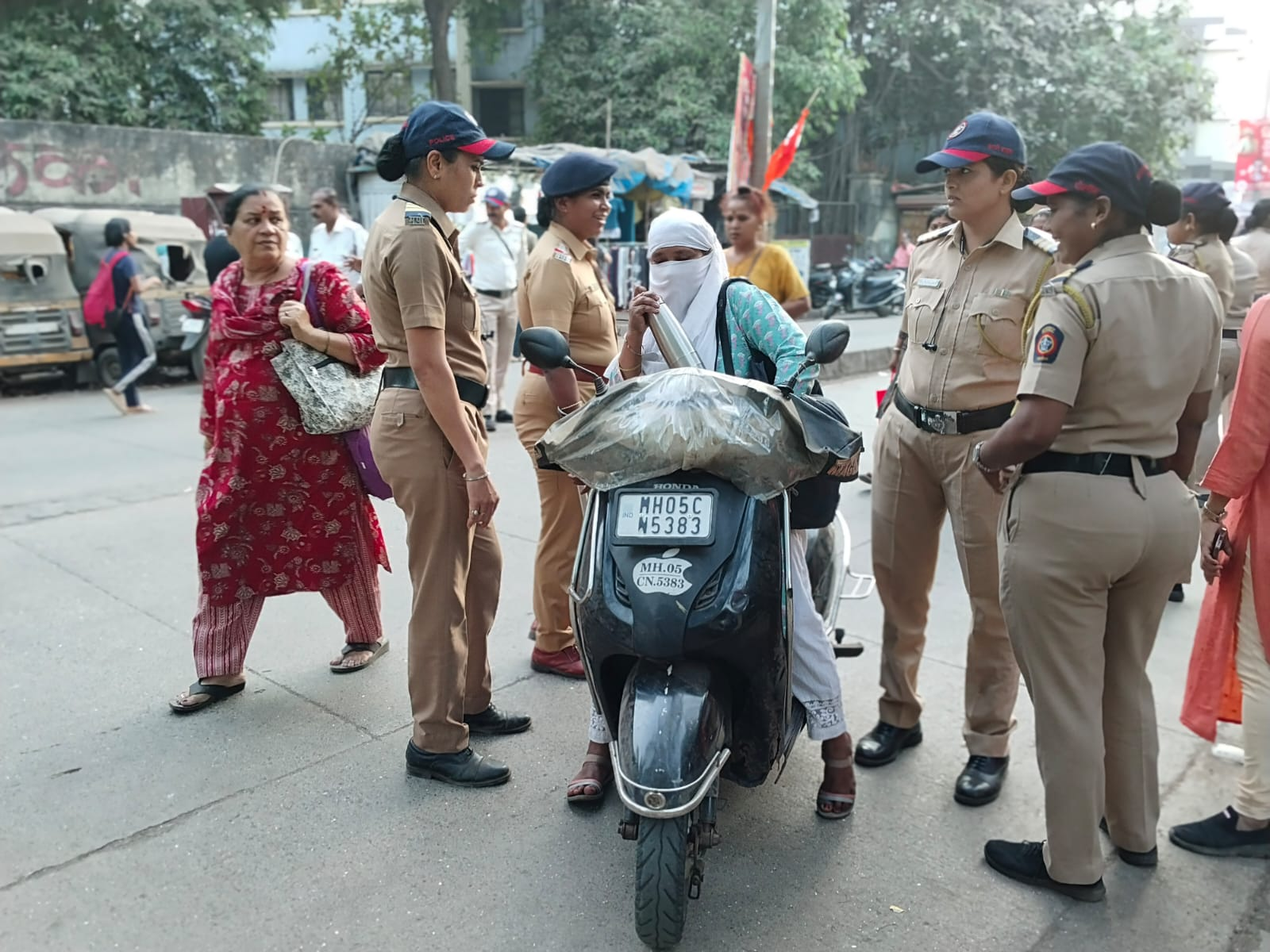 महिला पोलीस अधिकारी कर्मचाऱ्यांनी केली नाकाबंदी