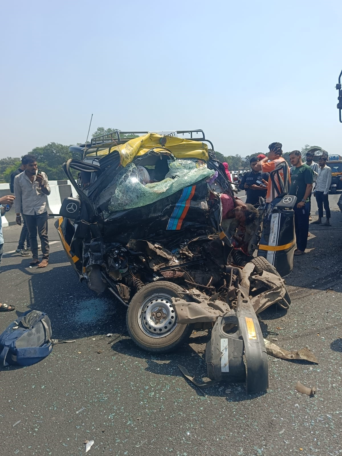 कल्याण : कल्याण मुरबाड मार्गावर काळजाचा थरकाप उडवणारी घटना सोमवारी घडली. एक सिमेंट मिक्सर आणि काळी-पिवळी इको टॅक्सी यांच्यात समोरासमोर भीषण धडक झाली. या अपघातात 11 प्रवाशांचा मृत्यू झाल्याची प्राथमिक माहिती समोर आली आहे. हा अपघात इतका भीषण होता की, इको कारचा अक्षरशः चक्काचूर झाला असून गाडीचा सांगाडा ओळखणेही कठीण झाले आहे. मिळालेल्या माहितीनुसार रायते पुलावर प्रवासी वाहतूक करणाऱ्या इको गाडीचा सकाळी ८.३० च्या सुमारास अपघात झाला. गाडीतील सर्व ११ प्रवाशांचा मृत्यू झाला त्यामध्ये ८ पुरुष व ३ महिलांचा समावेश असून मृतदेह गोवेली प्राथमिक आरोग्य केंद्र येथे नेण्यात आली.